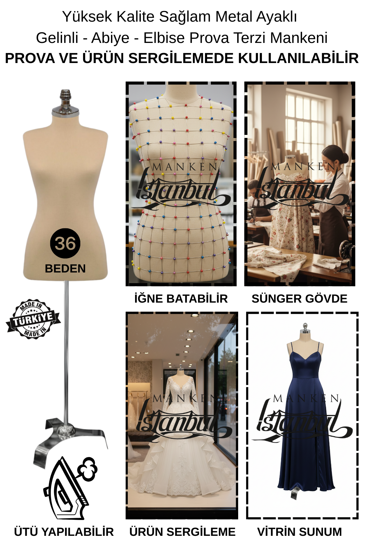 Sonuç olarak, 34–46 beden aralığına sahip süngerli terzi prova mankeni, tekstil sektöründe kalite ve verimliliği artırır. Gerçekçi vücut formu, iğne tutabilen yüzeyi ve dayanıklı yapısı ile profesyonel beklentilere cevap verir. Eğer üretim sürecinizde hata payını azaltmak ve zamandan tasarruf etmek istiyorsanız, doğru prova mankeni ile çalışmak size net bir avantaj sağlar.