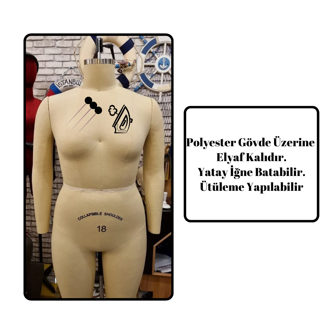 Bu tam boy terzi mankeni, iş akışınızı hızlandırır. Aynı zamanda profesyonel bir çalışma ortamı oluşturur.